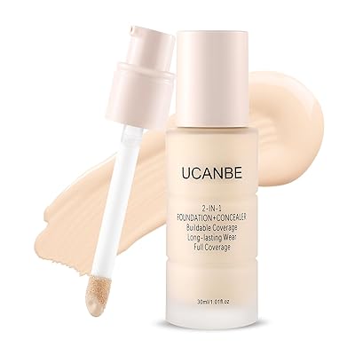 UCANBE 2-IN-1 Foundation Concealer, Full Coverage Long-Lasting Matte Makeup for Normal, Combination and Oily Skin, Buildable Waterproof Formula with Hyaluronic Acid 02 Classic Ivory