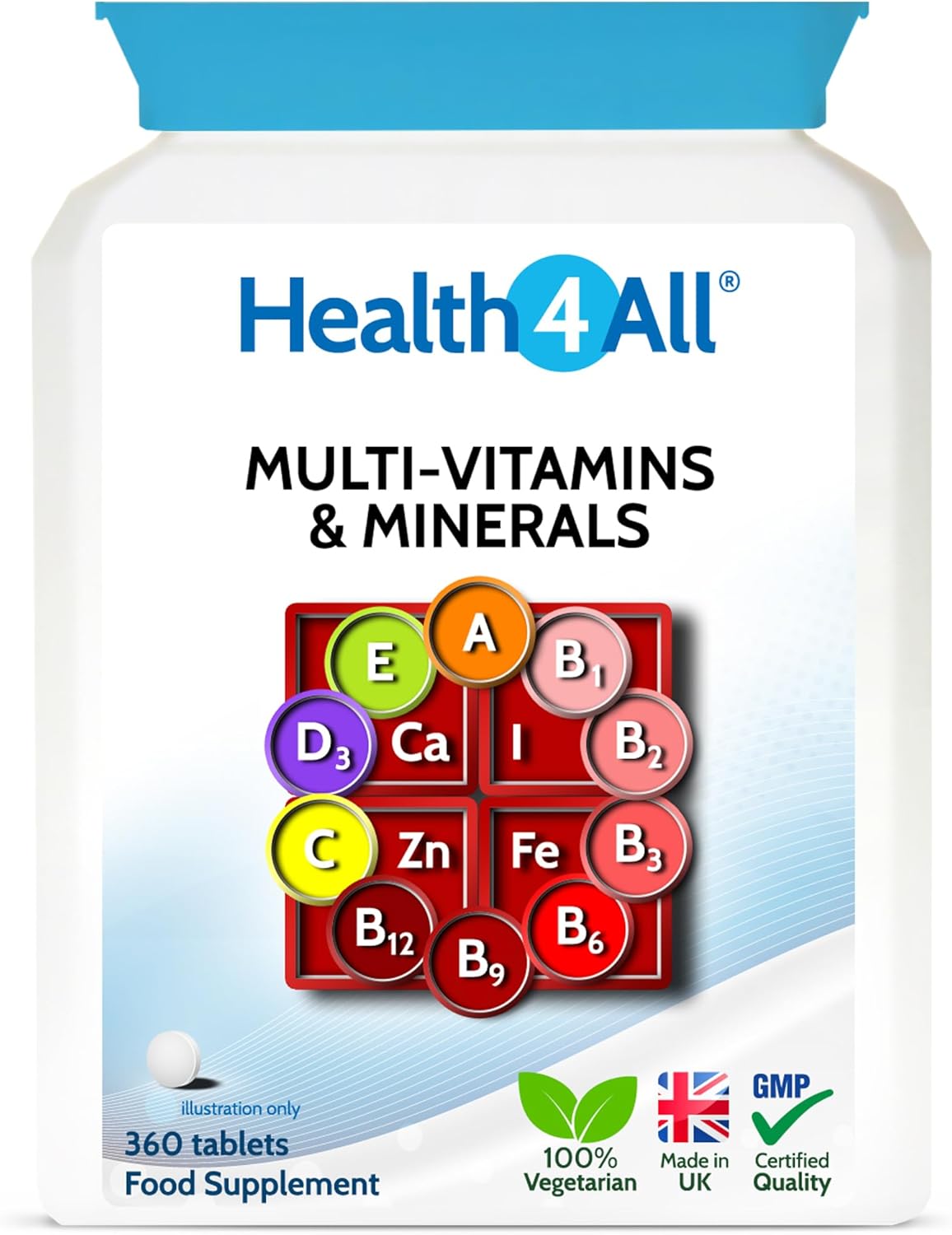 Health4All Multivitamins & Minerals One a Day 360 Easy to Swallow Tablets, 1 Year Supply, 100% RDA Daily Essential Nutrients for Men & Women, Supports Energy, Immunity & Overall Health | Made in UK